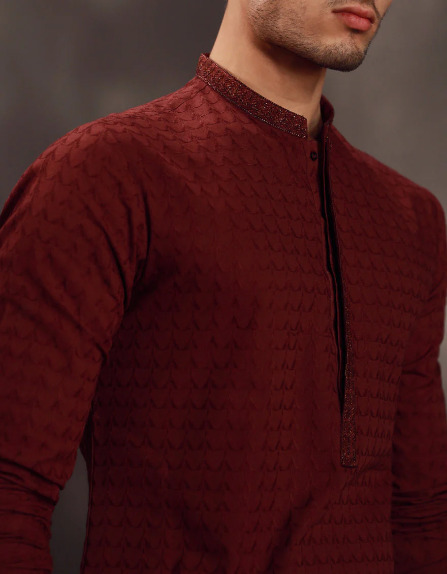 This men's Plum Cotton Formal Kurta combines traditional style with a modern touch, featuring classic designs, fine fabric, and careful craftsmanship'sperfect for any special occasion