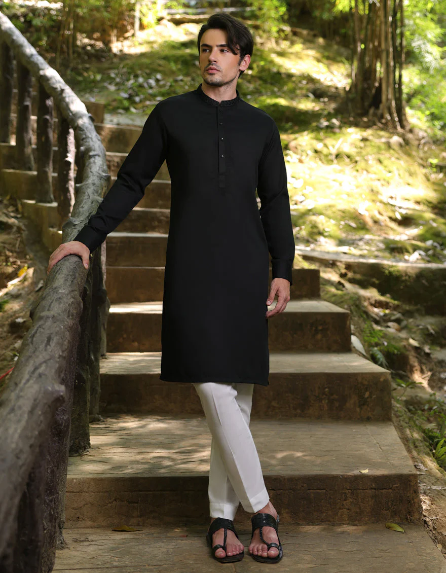 With subtle detailing and a refined silhouette, this Black Blended Semi-Formal Kameez Shalwar embodies understated elegance, perfect for semi-formal gatherings and events.