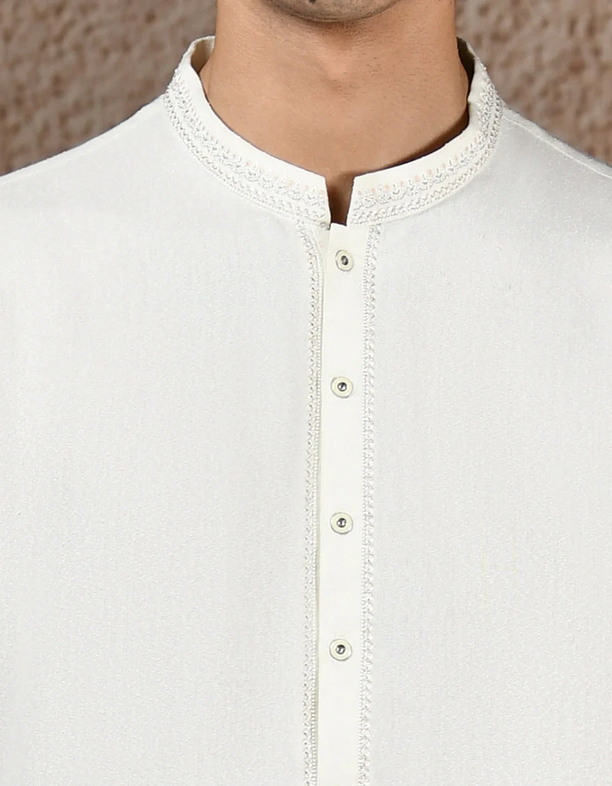 This men's Cream Blended Formal Kameez Shalwar epitomizes traditional charm and modern sophistication, featuring timeless designs, exquisite fabrics, and meticulous craftsmanship, perfect for adding a touch of cultural refinement to any occasion.